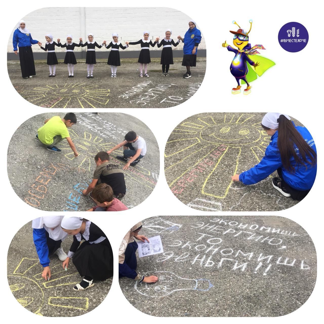 В рамках плана проведения фестиваля #ВместеЯрче 28.09.2019г. в МБОУ "СОШ№2 с.Шалажи" среди обучающихся 3-8 классов прошел конкурс рисунков на асфальте на тему "Энергосбережение"