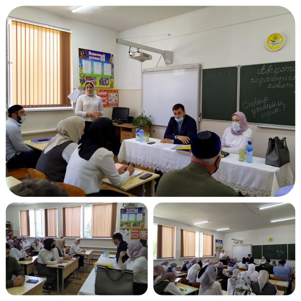 29.08.2020В МБОУ "СОШ √2 с. Шалажи" прошел традиционный августовский педагогический совет по теме: "Современный урок в условиях реализации ФГОС", на котором присутствовала Боприева Залина Шарпуддиновна - Главный специалист отдела нормативно-правового обеспечения, информационного сопровождения и инспектирования образовательных учреждений.