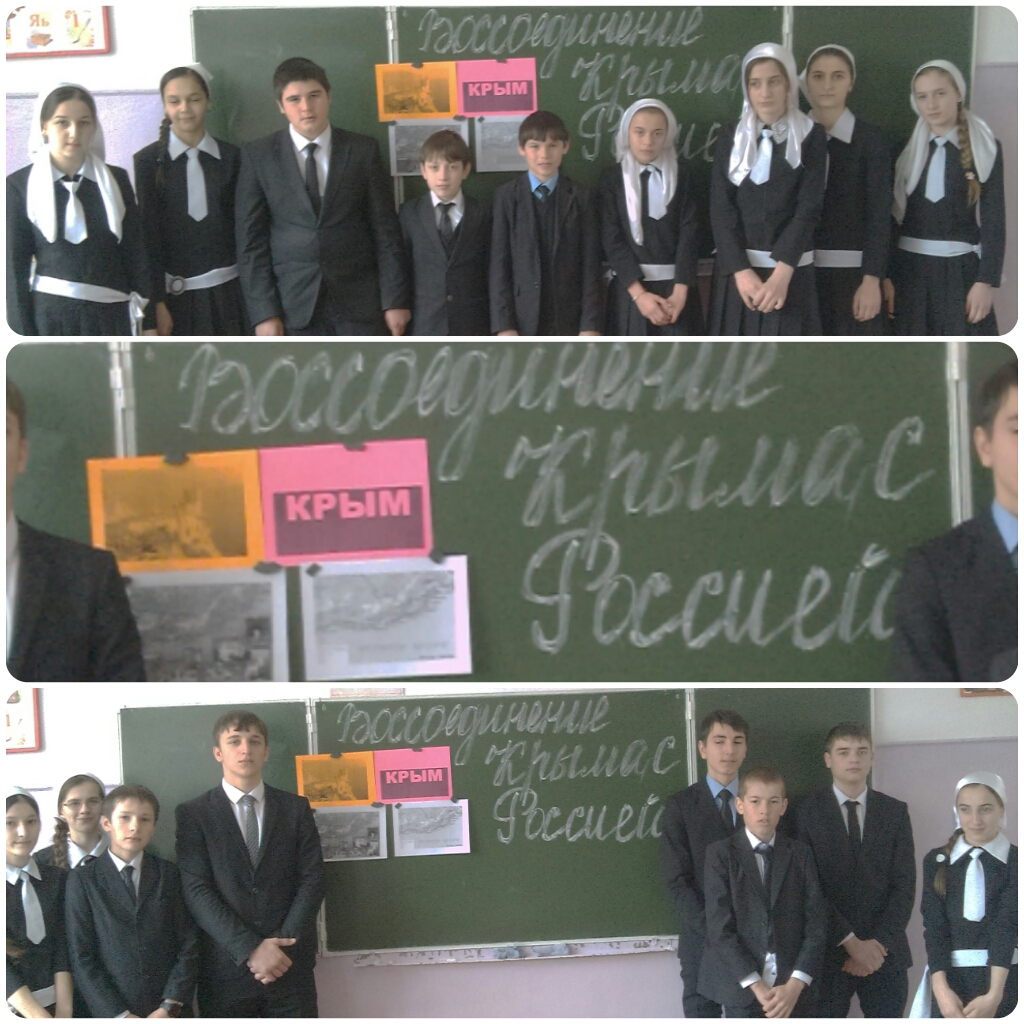 19.03.201519 марта мы, наша школа, отмечали годовщину «Воссоединения Крыма с Россией». 16 марта 2014 г. состоялся референдум о статусе Крыма. За воссоединение с Россией на референдуме в Крыму проголосовали 96,77% жителей. 17 марта 2014 г. после референдума была провозглашена Республика Крым, и в этот же день Севастопольский городской совет попросил российские власти включить город в состав Российской Федерации, как город федерального значения. 18 марта 2014 года в Георгиевском дворце Кремля был подписан договор о вступлении Республики Крым и города Севастополя в состав Российской Федерации на правах новых субъектов. 21 марта 2014 года был ратифицирован Федеральный Конституционный Закон «О принятии в Российскую Федерацию Республики Крым и образовании в составе Российской Федерации новых субъектов – Республики Крым и города федерального значения Севастополя.